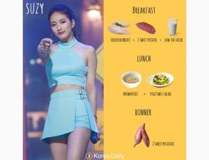 Suzy memiliki menu dada ayam ubi dan susu rendah lemak untuk sarapan. Berbeda dari Suzy menu diet artis Korea satu ini lebih fokus pada pembatasan kalori. Brown rice dan salad sayuran menjadi pilihan Suzy untuk makan siang.